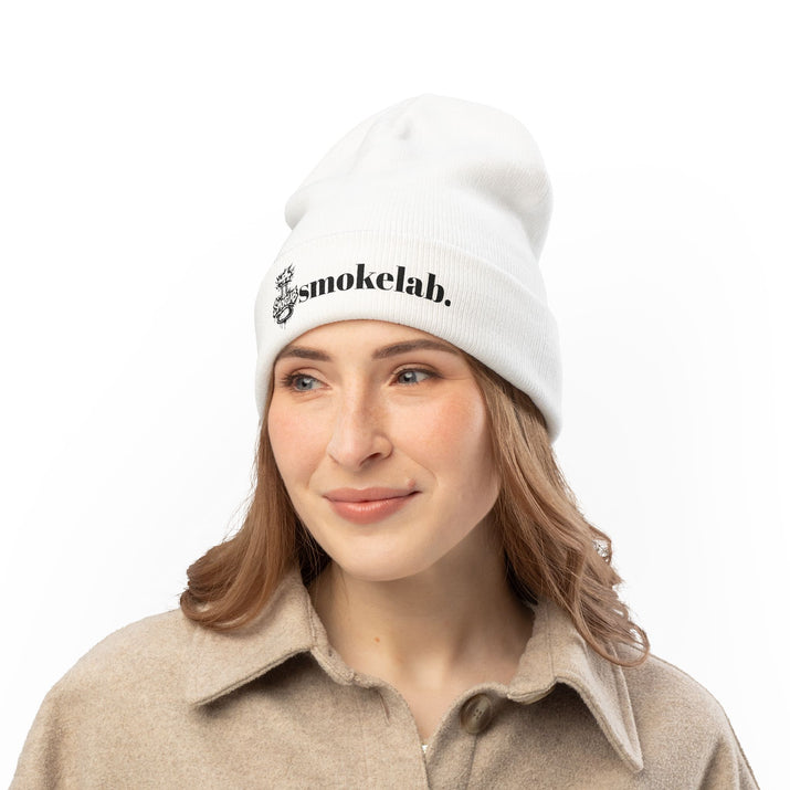 Embroidered 'smokelab.' Knit Beanie — Streetwear Logo Winter Hat